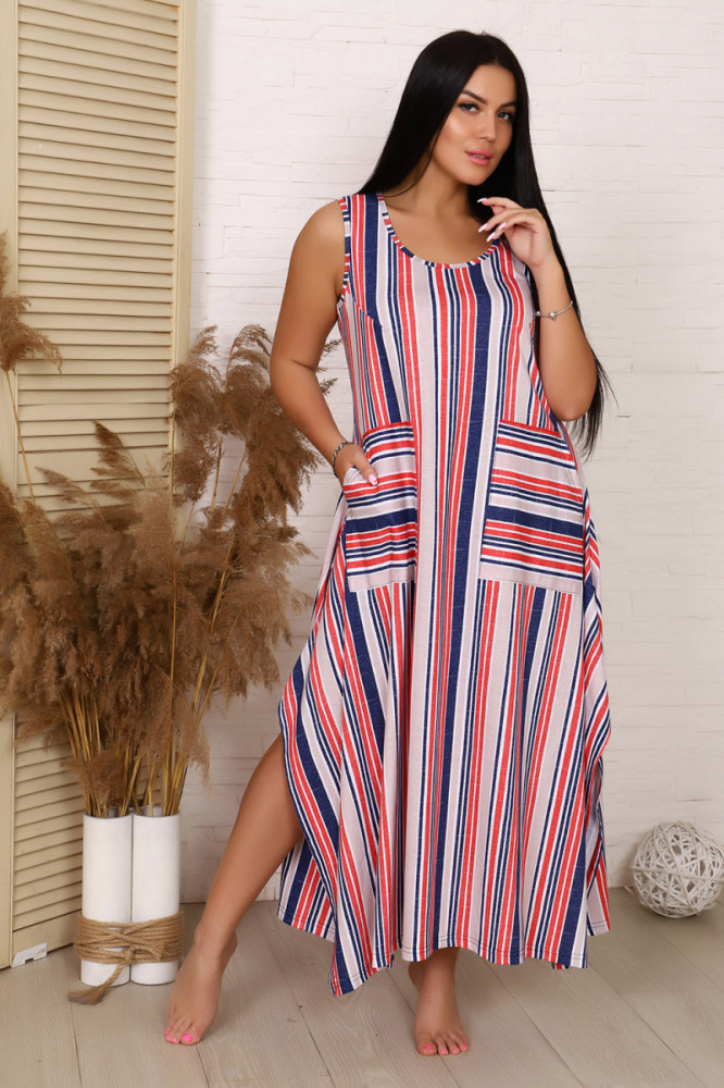 Очень лёгкий, приятный, на жару - самое то. Только не поняла размеры: на этикетке стоит 56 размер, а на язычке выреза сарафана 58. Но в любом случае, на мой 56 идеально подошёл (заказывала 56).