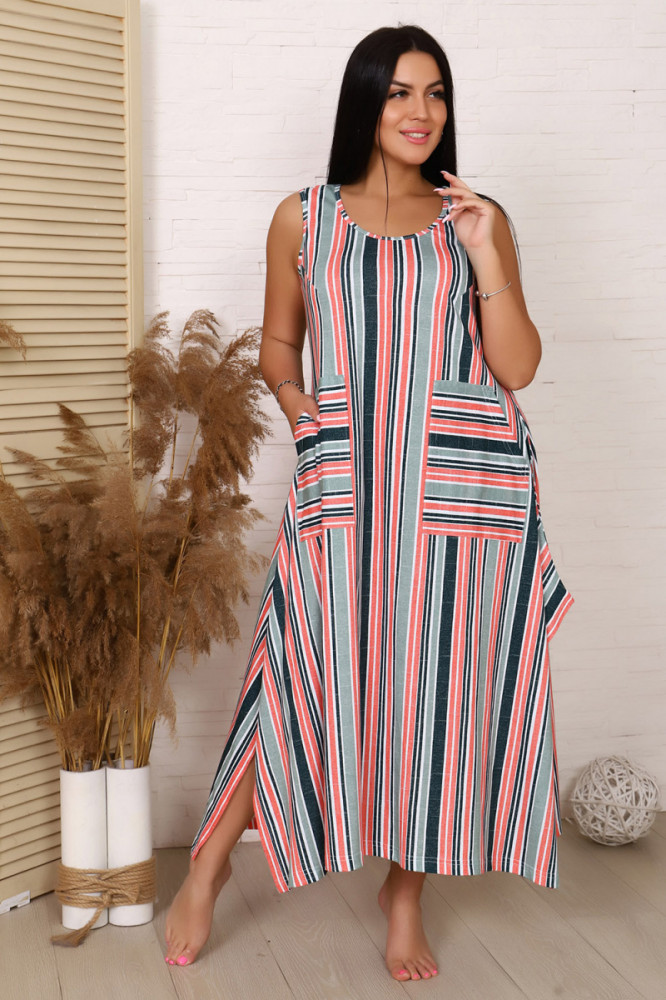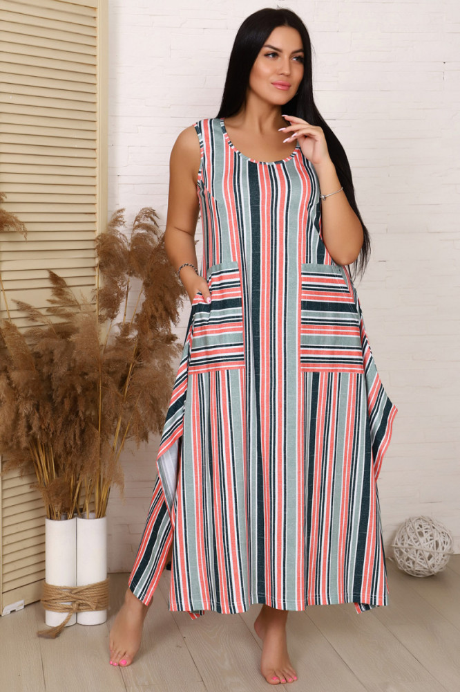 Очень лёгкий, приятный, на жару - самое то. Только не поняла размеры: на этикетке стоит 56 размер, а на язычке выреза сарафана 58. Но в любом случае, на мой 56 идеально подошёл (заказывала 56).