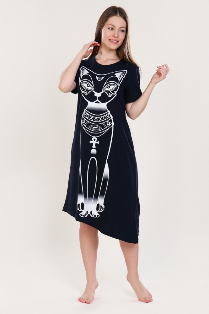 Плотный трикотаж, не просвечивает, хорошее качество рисунка. Заказывала точно свой размер - сидит свободно, как и положено тунике, хорошо, что не стала брать на размер больше. Планировала носить в качестве домашнего платья, но оказалось, что в нем вполне можно выходить на улицу - смотрится достойно. Посмотрим, как поведет себя после стирки.
