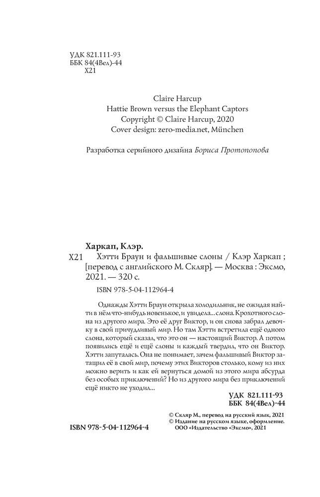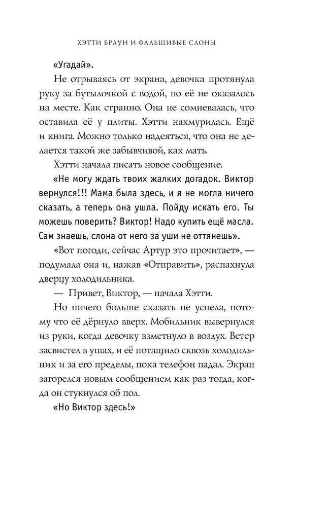 💳 Оплатить за товар можно при получении 🇰🇿 Есть бесплатная доставка по Казахстану от 1 дня 🎁 Копите бонусы с каждой покупки Серия: Хэтти Браун. Девочка в мире без дождя Однажды Хэтти Браун открыла холодильник, не ожидая найти в нём что-нибудь новенькое, и увидела... слона. Крохотного слона из другого мира. Это её друг Виктор, и он снова забрал девочку в свой причудливый мир. Но там Хэтти встретила ещё одного слона, который сказал, что это он — настоящий Виктор. А потом появились ещё и ещё слоны и каждый твердил, что он Виктор. |