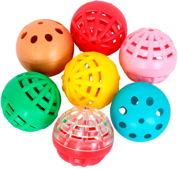 Шарик часто закатывается под диван, диаметр маловат. Пластик крепкий, внутри погремушка.