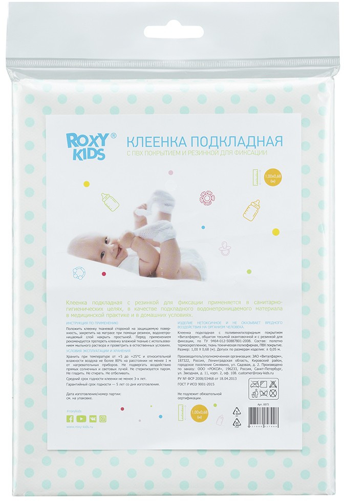 ROXY-KIDS Клеёнка-наматрасникВ данный момент этот товар отсутствует в продаже. Возможно, у нас найдется аналогичный или похожий товар здесь. Клеенка подкладная с резинками-держателями защищает матрасы и любую другую поверхность от загрязнения или протекания жидкостей. Удобно крепится к детским матрасам с помощью резинок-держателей. Изделие производятся из специальной медицинской клеенки с ПВХ-покрытием. Все клеенки имеют окантовку по периметру. Они обладают отличной теплопроводностью. Специальный покрывающий слой на основе поливинилхлорида делает поверхность пеленок удобной и комфортной — она быстро приобретает температуру человеческого тела. Отсутствует так называемый «эффект холодного прикосновения», что очень важно в педиатрии. Микропористая структура данного покрытия придает клеенке свойства газопроницаемости. |