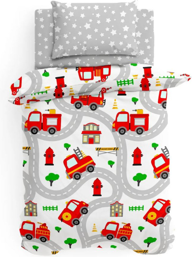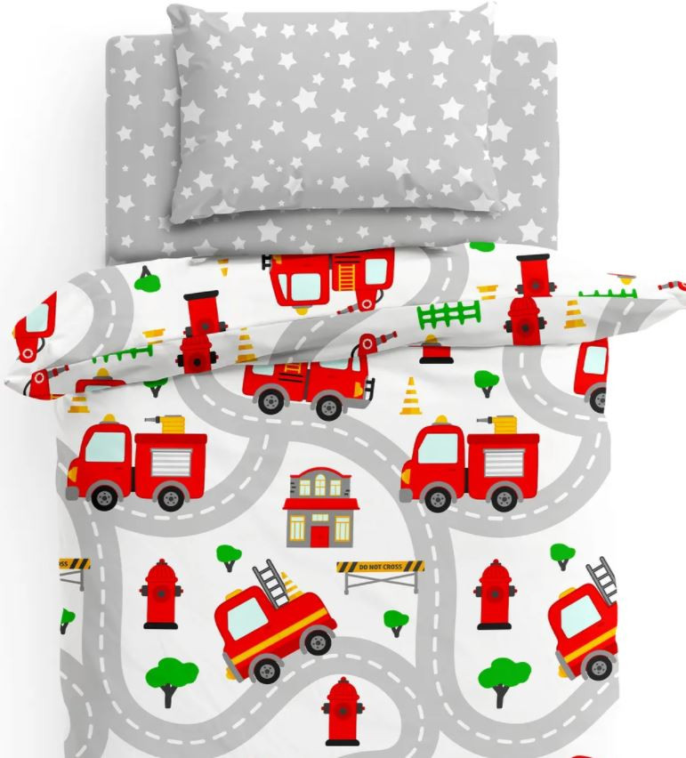 Комплект постельного белья «Пожарные машинки» изготовлен исключительно из 100% хлопка российского производства с применением прочных и экологически чистых красителей.