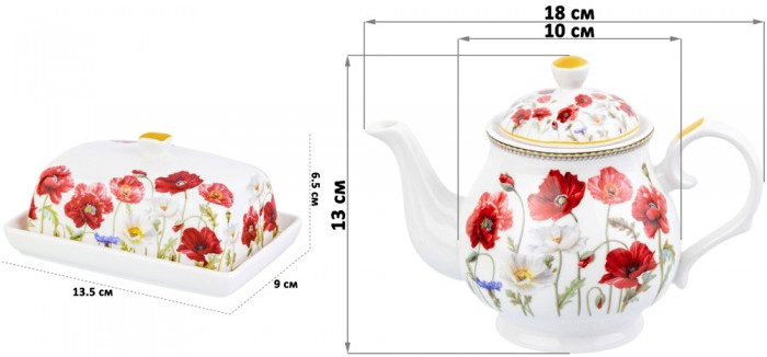 красивый набор, без изьянов, с моими любимыми маками. для одного человека подойдет заварить чай на день, масло отрезать от пачки кусочек и положить в масленку. Как раз для одного человека я и купила в подарок.