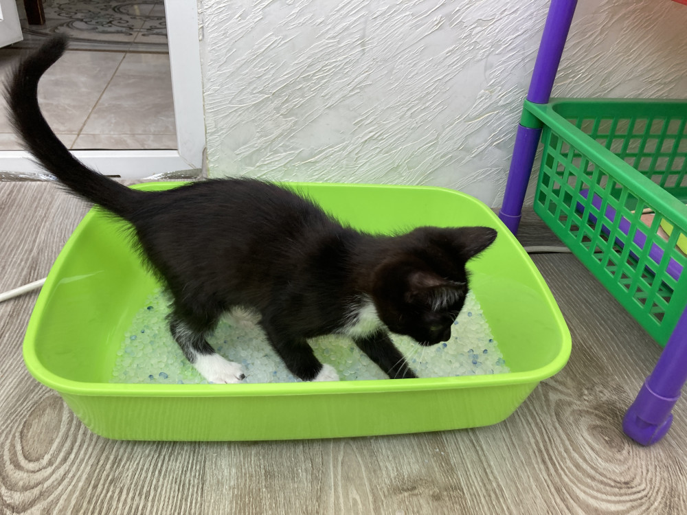 Нормальный горшок, нашему котику на фото 2 месяца. Считаю что размер и для взрослого кота подходящий будет. И борты высокие.
