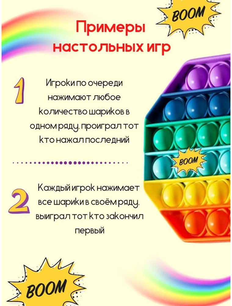 💳 Оплатить за товар можно при получении 🇰🇿 Есть бесплатная доставка по Казахстану от 1 дня 🎁 Копите бонусы с каждой покупки Серия: Антистресс Вечная пупырка антистресс Pop it — это увлекательная игра и антистресс, которая поможет снять стресс и беспокойство, либо же скоротать время — просто хлопайте пузырьки! Не знаете, что приобрести в подарок вашему ребенку? Хочется подарить что-то милое и классное, но при этом полезное и долговечное? Тогда вечная пупырка — это то, что вам подойдет. Игрушка антистресс рассчитана для взрослых и детей. Она не имеет возрастного ограничения и подойдет, как для семейного времяпровождения, так и для детских забав. Вечная пупырка может служить игрушкой антистрессом, а так же игрушкой для развития моторики. |
