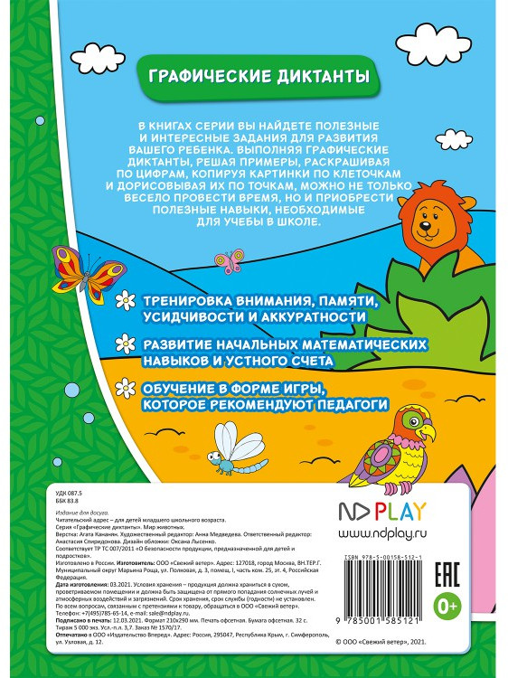 💳 Оплатить за товар можно при получении 🇰🇿 Есть бесплатная доставка по Казахстану от 1 дня 🎁 Копите бонусы с каждой покупки Серия: Графический диктант В книгах серии «Графический диктант» собраны самые полезные и интересные задания для развития ребенка. Графический диктант — это метод обучения и развлечения одновременно. Выполняя графические диктанты, решая примеры, раскрашивая по цифрам, копируя картинки по клеточкам и дорисовывая их по точкам, можно не только весело провести время, но и приобрести полезные навыки, необходимые для учебы в школе. |