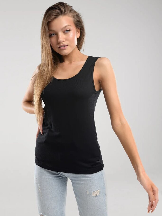 Хорошая маечка, тоненькая, материал не мнущийся, приятная к телу, на размер 48-50 взяла 50 и довольно свободная, можно было взять и 48 размер! Рекомендую на лето самое то!