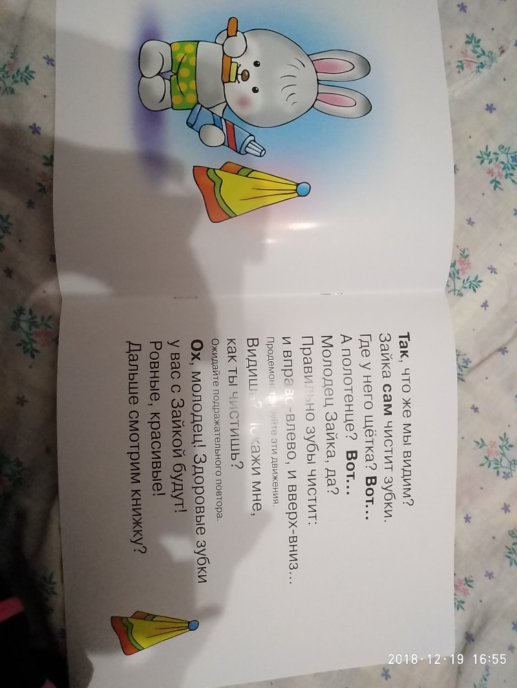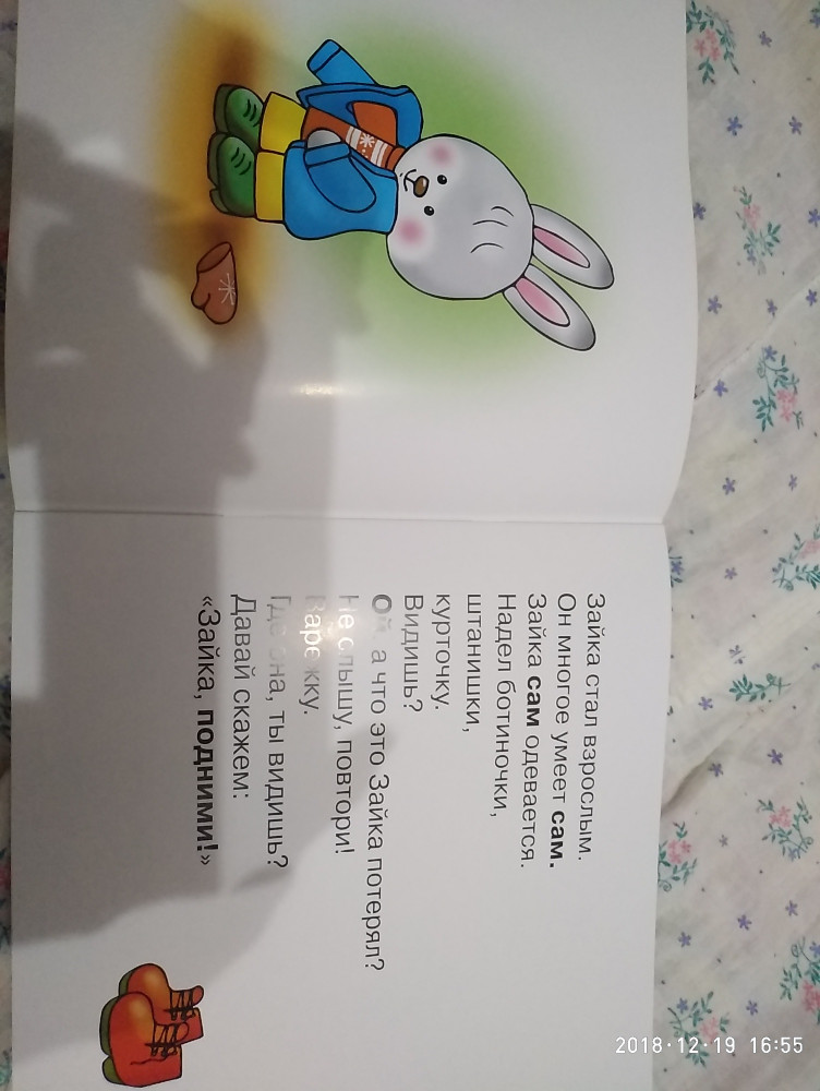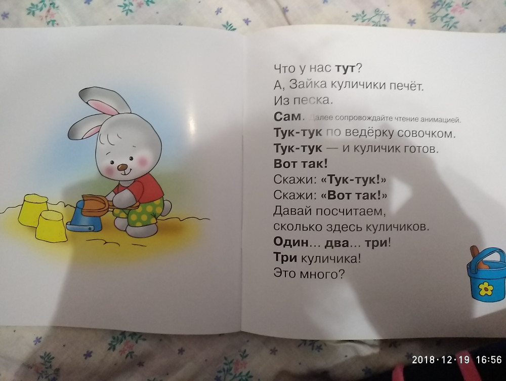 Отличная книжка, нам с дочей (1.7) очень понравилась. В иллюстациях с зайкой доча узнает себя, и поэтому любит изображать то, что на картинке. Думаю возьму ещё пару книжек из этой серий, т.к. устраивает цена, ну и для разнообразия.