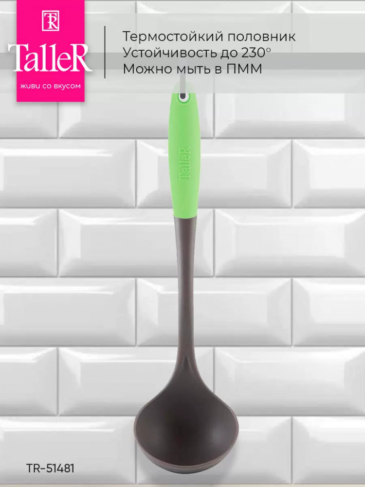 TalleR ПоловникВ данный момент этот товар отсутствует в продаже. Возможно, у нас найдется аналогичный или похожий товар здесь. Половник изготовлен из термостойкого пластика. Качественный материал не впитывает запахи, термоустойчив и обладает свойством отталкивания грязи. Устойчивость к температуре до 210 градусов. В ручке предусмотрено отверстие для подвешивания. Материал — термопластик. |