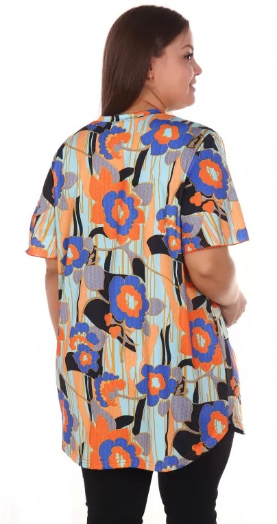 От туники я в восторге, нигде не обтягивает. Специально брала размер побольше свободная как сейчас модно оверсайз. Длинна нормальная все прикрывает. На лето вообще прекрасно.