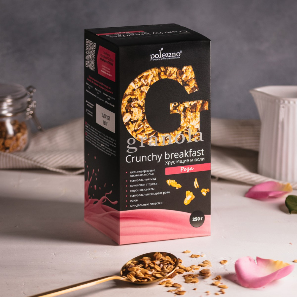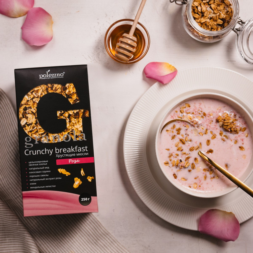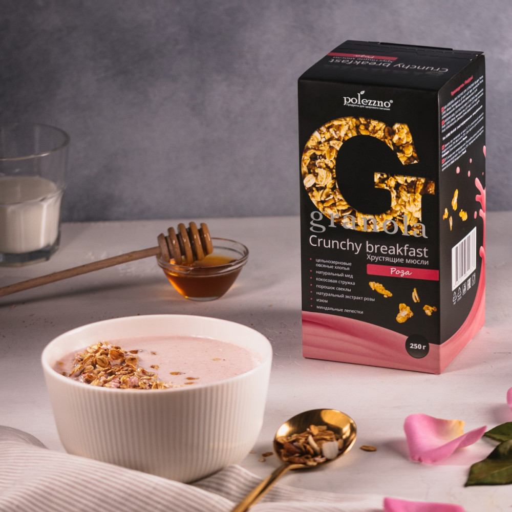 • 100% натуральный экстракт розы придает граноле выразительный вкус, а порошок свеклы — чудесный розовый цвет;
