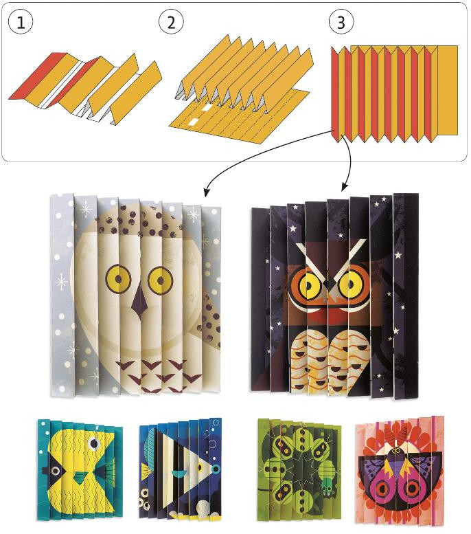 Набор для творчества «Дикий мир»" от французского производителя игрушек «Djeco» — это набор для создания 3D-панно из бумаги. В составе набора ребенок найдет 4 разных панно с двумя вариантами картин в каждом. Персонажами набора выступают разные дикие животные и птицы. На готовом панно картинка будет меняться в зависимости от угла, под которым смотришь на панно. Набор помогает развить концентрацию, ловкость и мелкую моторику. Готовыми работами можно украсить комнату.