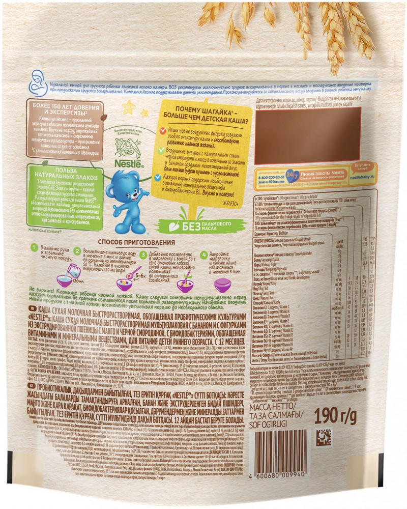 Nestle Каша молочная с бананом, земляникой садовой и пшеничными фигурками с черной смородиной