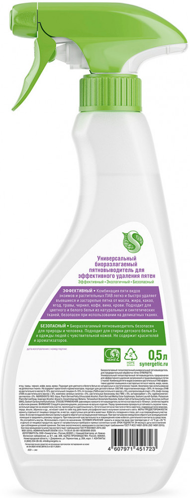 Synergetic Пятновыводитель гипоаллергенный универсальный для предварительной обработки-20% +21