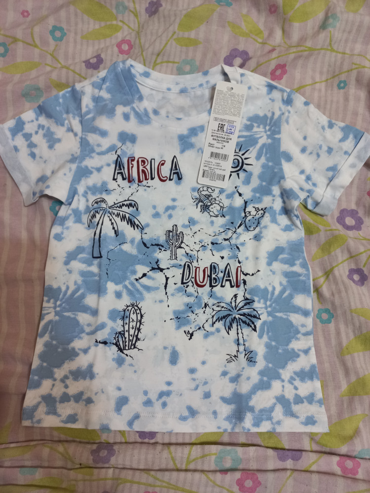 Футболка отличная, материал приятный, качество на высоте, идеальный вариант для лета. Приобретала с рассчетом "на вырост" и угадала, к лету будет в самый раз! 👍