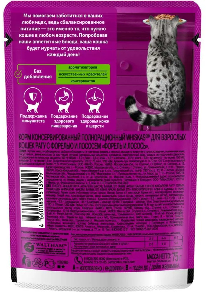 Whiskas Корм для кошек влажный «Рагу с треской и лососем»