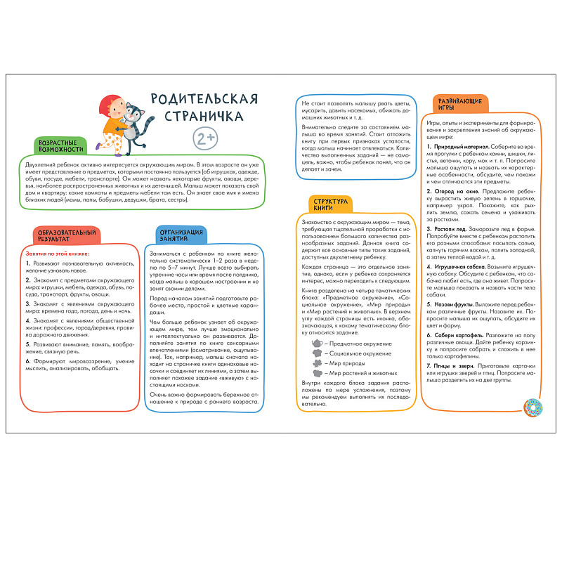 💳 Оплатить за товар можно при получении 🇰🇿 Есть бесплатная доставка по Казахстану от 1 дня 🎁 Копите бонусы с каждой покупки Серия: Школа Семи Гномов. Активити с наклейками Книга «Окружающий мир 2+» из серии «Школа Семи Гномов. Активити с наклейками» предназначена для расширения кругозора и знаний об окружающем мире детей от 2 до 3 лет. |