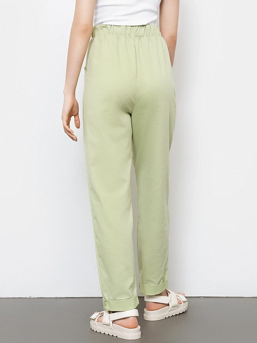 Брала зелёные, про ткань скажу, что очень хорошая (плотная), штаны отличные, удобные, с завышенной талией кому не совсем нравится вопрос решаемый, карманы глубокие, фасон брюк стройнит. Я очень довольно, своих денег стоит.