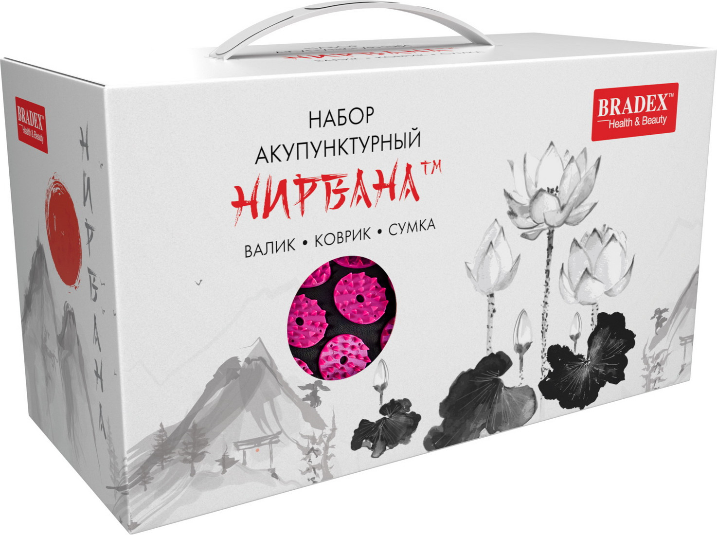 В основе серии товаров «Нирвана» лежит древнекитайский метод игольчатого массажа для воздействия на активные точки тела. Такой массаж способствует повышению мышечного тонуса, работоспособности и релаксации. Акупунктурный набор «Нирвана» включает в себя коврик, валик и сумку для хранения или переноски составляющих набора, чтобы всегда оставаться на страже своего здоровья как на тренировке, так и в путешествии. Острые акупунктурные шипы уникальной формы «Цветы жизни» стимулируют биологически активные точки и мышцы, снимают боль и усталость, улучшают работу опорно-двигательного аппарата и внутренних органов, помогают расслабиться и снять стресс после напряженного дня. Акупунктурный массаж помогает в профилактике целлюлита, стимулирует кровообращение, устраняет застойные явления в проблемных зонах, помогает выровнять кожный рельеф, повышает упругость и тонус кожи.