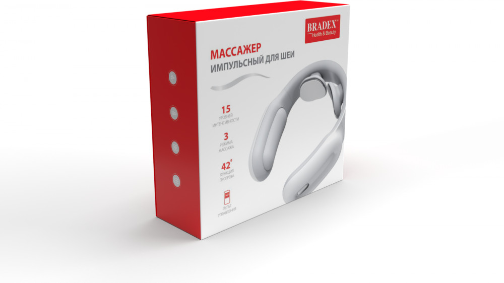 Bradex Массажер импульсный для шеиВ данный момент этот товар отсутствует в продаже. Возможно, у нас найдется аналогичный или похожий товар здесь. Стильный, эргономичный и невероятно удобный импульсный массажер для шеи позволяет снять мышечное напряжение, восстановить кровообращение, уменьшить вероятность спазмов за счет снижения тонуса мышц, облегчить болевые симптомы и улучшить общее самочувствие. Гибкая U-образная конструкция массажера с защитным мягким силиконовым покрытием с внутренней стороны позволит комфортно и удобно разместить массажер на вашей шее. Импульсное частотное воздействие посредством электродов усиливает микроциркуляцию крови и, таким образом, способствует снятию гипертонуса мышц шеи. Компактный размер и встроенный аккумулятор дают возможность брать массажер с собой на работу или в путешествие. Для повышения эффективности массажа предусмотрена дополнительная функция прогрева до 42⁰C. Переключение режимов и интенсивности электромиостимулирующего массажа осуществляется при помощи пульта управления, что дает возможность легко настраивать массажер в процессе применения. |