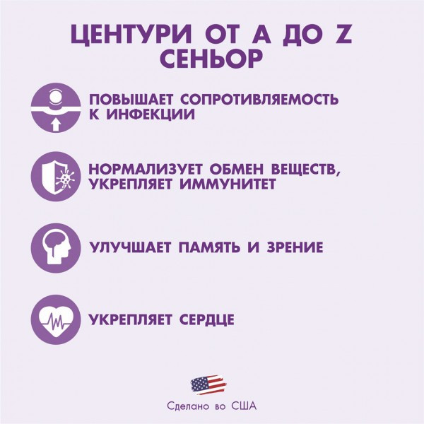 Earth's Creation Комплекс витаминов «Центури от A до Z 50+»В данный момент этот товар отсутствует в продаже. Возможно, у нас найдется аналогичный или похожий товар здесь. Центури от A до Z Сеньор комплекс из витаминов, макро- и микроэлементов, дозировки которых специально подобраны с учетом физиологической потребности организма человека старшего возраста. Витаминно-минеральный комплекс Центури от A до Z Сеньор — это новейший формат, учитывающий все потребности пожилого организма и помогающий в полной мере восполнить все недостающие элементы. |