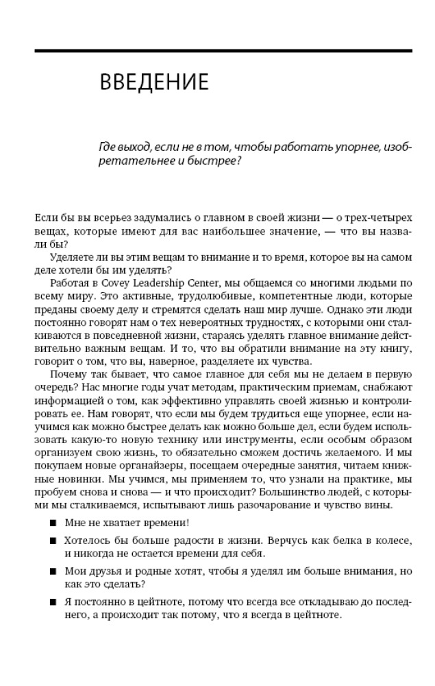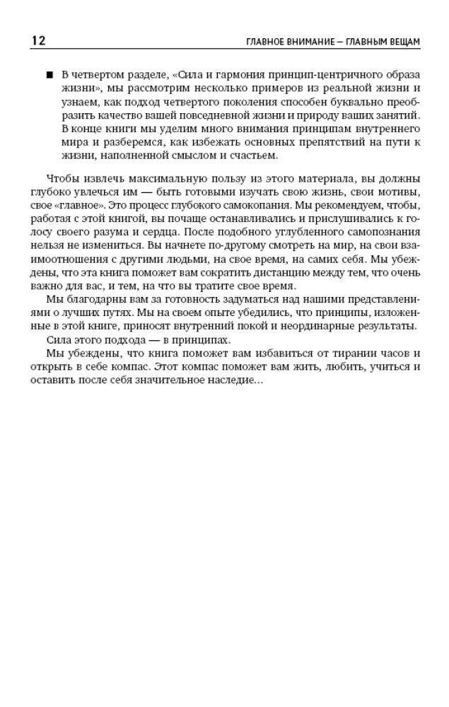 Главное внимание главным вещам. Жить, любить, учиться и оставить наследиеСтивен Р. Кови, Ребекка Меррилл В данный момент этот товар отсутствует в продаже. Возможно, у нас найдется аналогичный или похожий товар здесь. Серия: Книги по личностному росту от Стивена Кови Как организовать свое время так, чтобы все успеть? Рецепт авторов кажется парадоксальным: далеко не все нужно успевать. Какой смысл как можно быстрее карабкаться вверх по лестнице успеха, если она приставлена не к той стене? Развивая идеи знаменитого бестселлера «Семь навыков высокоэффективных людей», авторы объявляют прежние концепции и инструменты |