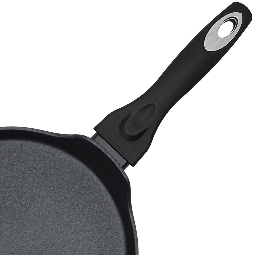 пришлось заменить свою старую тефлоновую блинницу на новую в связи с покупкой новой индукционной плиты, новая блинница была в деле раза 4-5, показала себя достойно- тесто не прилипает, сама блинница не такая тяжелая, как прежняя, но это качество жарки не портит, все жарится равномерно, дно не деформируется при нагреве, диаметр, на мой взгляд, оптимальный, рекомендую к покупке