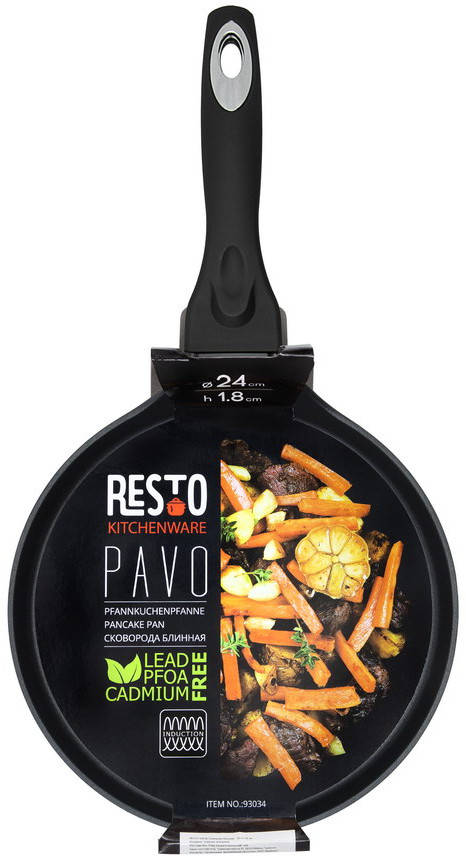 Resto Kitchenware Сковорода блиннаяВ данный момент этот товар отсутствует в продаже. Возможно, у нас найдется аналогичный или похожий товар здесь. Блинная сковорода из кованого алюминия имеет многослойное дно с антидеформационным диском. Сковородка подходит для любых типов плит и сохраняет все вкусные свойства пищи. Антипригарное мраморное покрытие подходит для приготовления пищи с минимальным количеством масла и не портит вкусовые качества и внешний вид блюд. Эргономичная ручка с мягким покрытием имеет удобный захват, не греется и не выскальзывает из рук. Изделие идеально подходит для переворачивания блинов и перекладывания их на блюдо. Сковороду можно мыть вручную любым моющим средством, кроме щелочного и абразивного. |