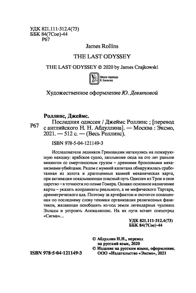 малый формат портативность интересный сюжет погружение В данный момент этот товар отсутствует в продаже. Возможно, у нас найдется аналогичный или похожий товар здесь. Серия: Весь Роллинс (обложка) Исследователи ледников Гренландии наткнулись на шокирующую находку: арабское судно, заплывшее сюда на сто лет раньше викингов. Со смертоносным грузом — древними бронзовыми механизмами-убийцами. Рядом с мумией капитана обнаружилась сработанная из золота и драгоценных камней механическая карта, при активации показывающая опасный путь Одиссея из Трои в свое царство — в точности по поэме Гомера. Однако основное назначение карты — указать координаты реального, а не мифического Тартара, древнегреческого ада. Поэтому за артефактом и охотится оснащенная по последнему слову техники организация религиозных фанатиков, желающая освободить из-под земли легендарных чудовищ Эллады и устроить Апокалипсис. На их пути встает спецотряд «Сигма»... |