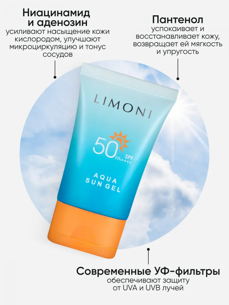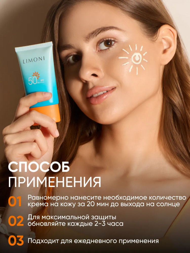 Limoni Крем-гель солнцезащитный SPF 50+-30% +275 быстро впитывается не выбеливает удобная крышка сушит кожу