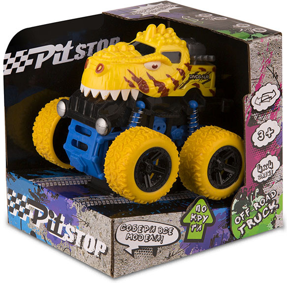 Pit Stop Машинка инерционная «Трак Динозавр»В данный момент этот товар отсутствует в продаже. Возможно, у нас найдется аналогичный или похожий товар здесь. Машины или динозавры — что больше любит ваш ребенок? Зачем выбирать, когда есть трак «Динозавр» от «Pit Stop»! Яркая инерционная машинка в виде головы динозавра приведет в восторг любого ребенка. Ей, как настоящему тираннозавру, нипочем любые препятствия: корпус изготовлен из ударопрочного пластика, а огромные резиновые колеса и мощные рессоры позволяют лихо промчать даже по кочкам. Машинка способна переворачиваться на 360°. |