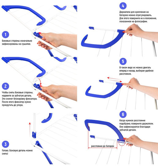 Сушилка широкая, для полотенец в самый раз. Отстегнуть боковые стороны не удалось, очень жесткое крепление
