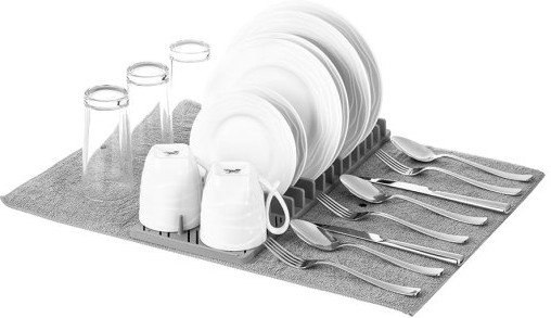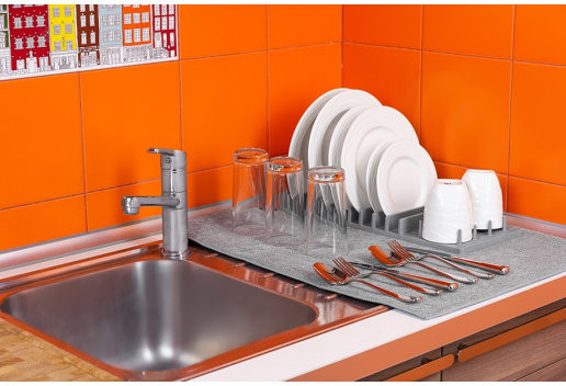 Очень удобная, быстро впитывает воду, можно расположить полностью или наполовину в зависимости от количество посуды