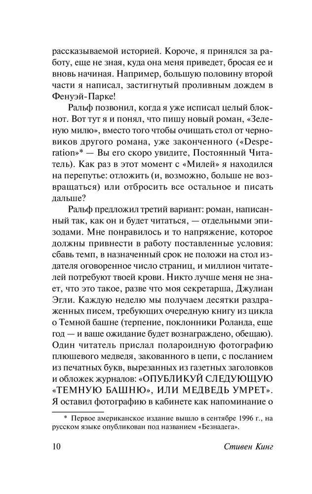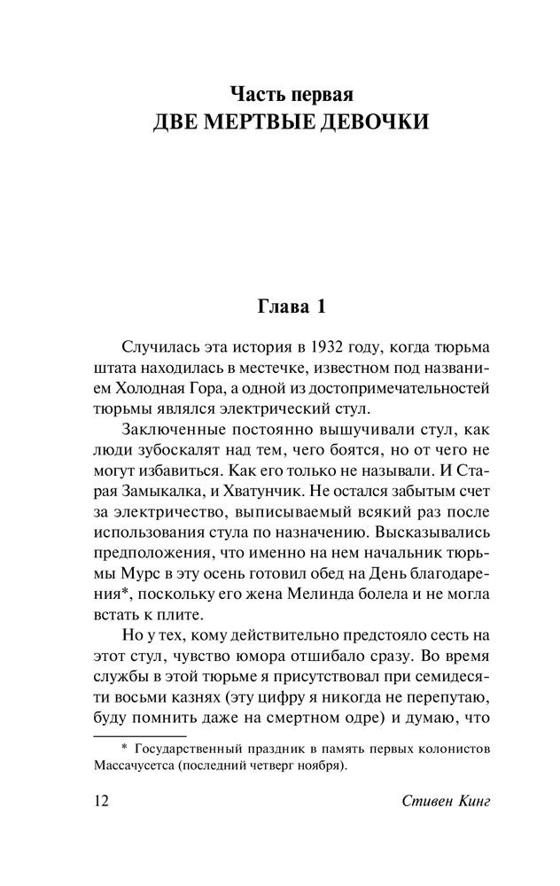 Серия: Король на все времена (м) Роман-событие, ставший лауреатом премии Брэма Стокера и вдохновивший Фрэнка Дарабонта на создание культового фильма, в котором Том Хэнкс сыграл, возможно, свою лучшую роль. |