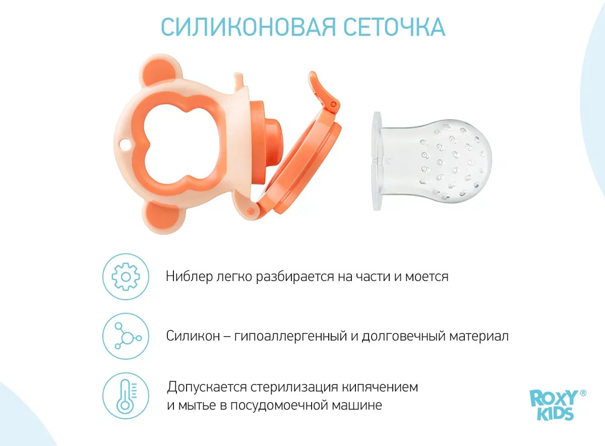ROXY-KIDS Ниблер для прикорма «Monkey»В данный момент этот товар отсутствует в продаже. Возможно, у нас найдется аналогичный или похожий товар здесь. Ниблер для прикорма малышей поможет легко и удобно ввести в рацион малыша фрукты, овощи и печенье. Ребенок сможет пробовать новые вкусы самостоятельно без риска подавиться. |