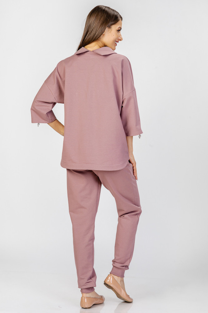 Костюм хороший, интересный фасон. Цвет более тёмный, чем на фото, я бы сказала, цвет какао с молоком. Почему то резинка на поясе и на штанинах прилично отличается от основного цвета., это минус. Размер 50, но маломерит. У меня верх-50, низ-48,сел отлично. Но на конкретный 50й, думаю, подойдёт 52. В общем, покупкой довольна. Как всегда, быстрая доставка. Спасибо.