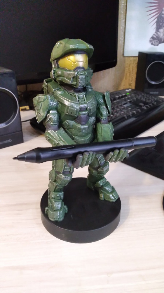 Подставка «Master Chief» выполнена по мотивам компьютерной игры Halo Infinite. Цветной пластиковый держатель для телефона выглядит уникально и очаровательно, отлично подходит для любого девайса. Поставляется в привлекательной тематической картонной коробке.