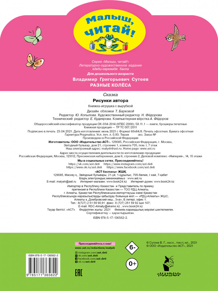 💳 Оплатить за товар можно при получении 🇰🇿 Есть бесплатная доставка по Казахстану от 1 дня 🎁 Копите бонусы с каждой покупки Серия: Малыш, читай! С книгой В. Сутеева «Разные колёса» серии «Малыш, читай!» знакомство с коротеньким проивзедением станет первым самостоятельным шагом в чтении, а поможет малышу в этом специально подобранный крупный шрифт. С книгами серии «Малыш. читай!» чтение станет легким! |
