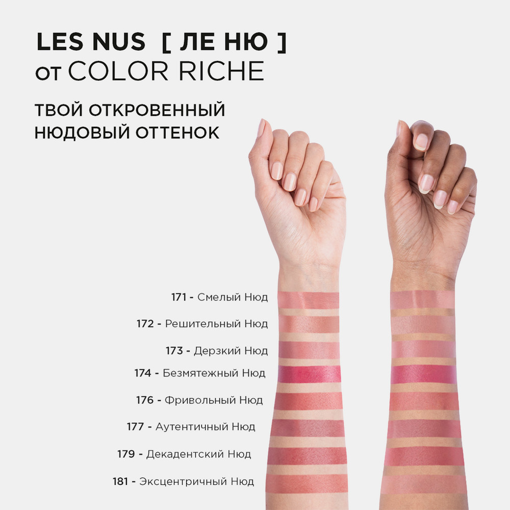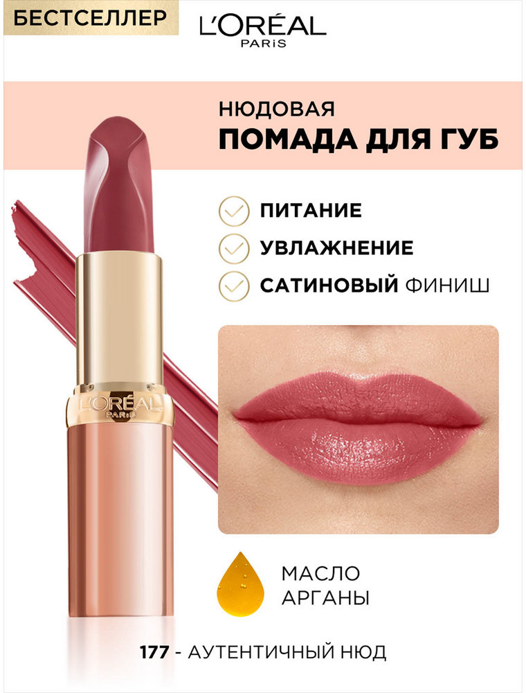 L'Oreal Paris Помада для губ нюдовая «Color Riche», тон 177 Аутентичный нюд