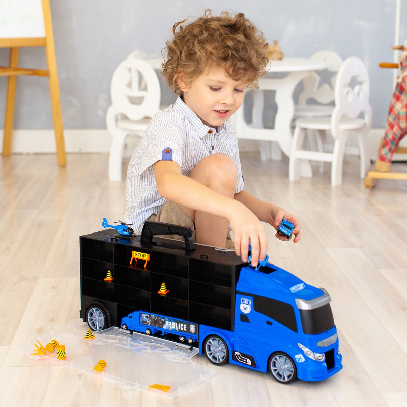 💳 Оплатить за товар можно при получении 🇰🇿 Есть бесплатная доставка по Казахстану от 1 дня 🎁 Копите бонусы с каждой покупки Серия: Полицейский участок Автовоз Givito — 2 в 1: игрушечный грузовой автомобиль и система хранения для маленького транспорта. Колеса автовоза подвижные, поэтому он легко катается по поверхности. Автовоз оснащен удобной ручкой, что позволяет брать его с собой. В кабину встроен ускоритель машинок, который придаст игре еще больше динамики. |