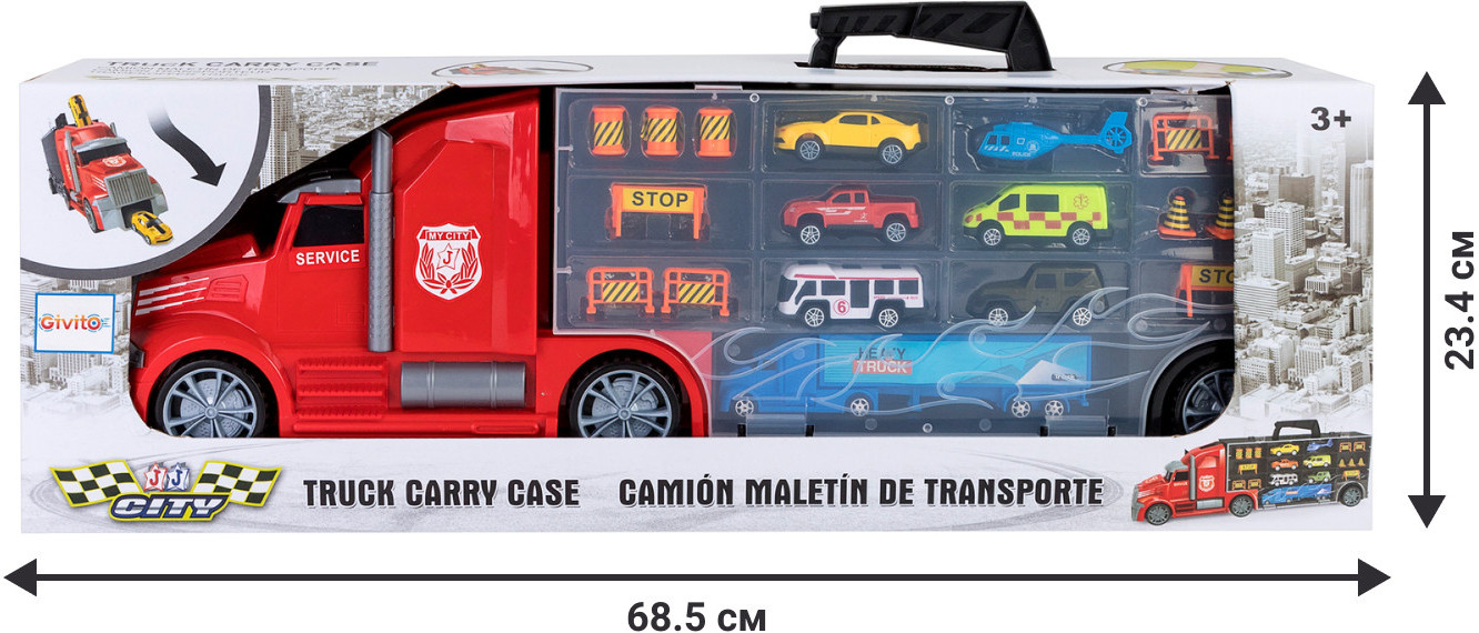 💳 Оплатить за товар можно при получении 🇰🇿 Есть бесплатная доставка по Казахстану от 1 дня 🎁 Копите бонусы с каждой покупки Серия: Мой город Автовоз Givito — 2 в 1: игрушечный грузовой автомобиль и система хранения для маленького транспорта. |