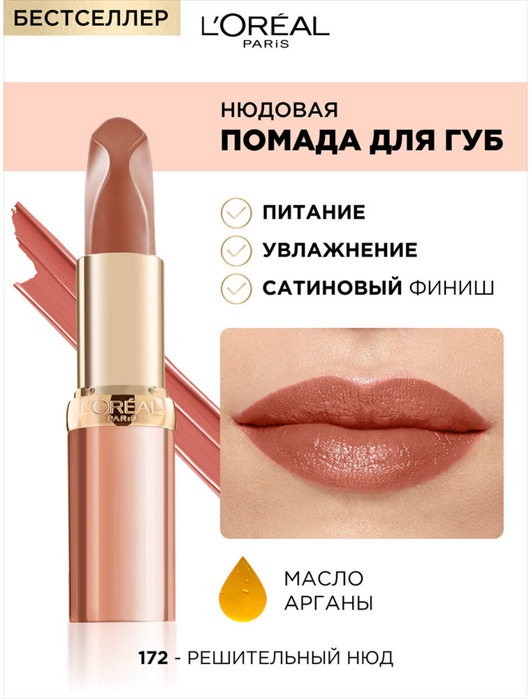L'Oreal Paris Помада для губ нюдовая «Color Riche», тон 172 Решительный нюд