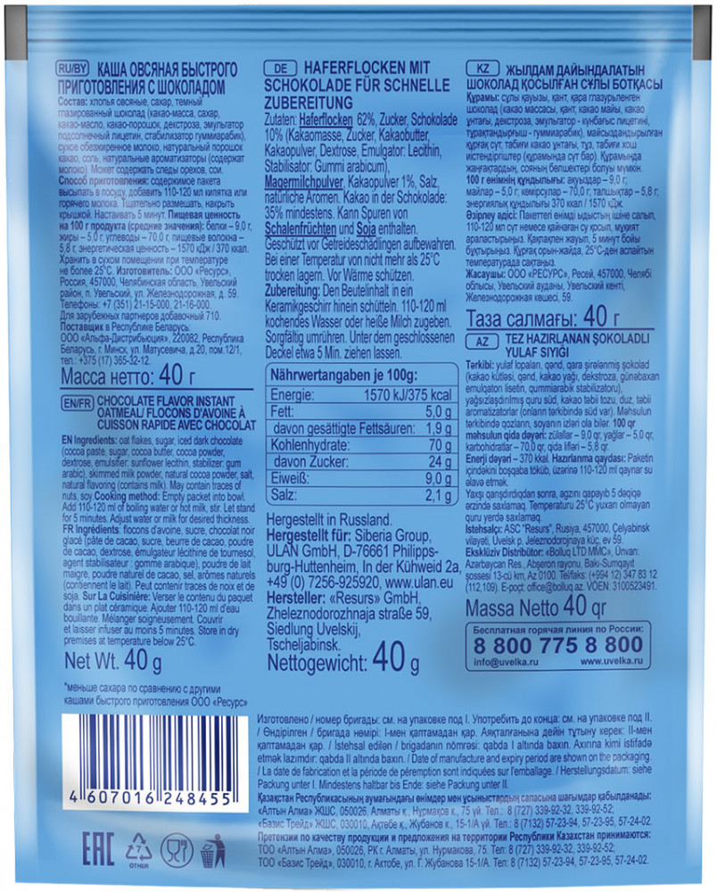 Отзывы «Каша овсяная с шоколадом»