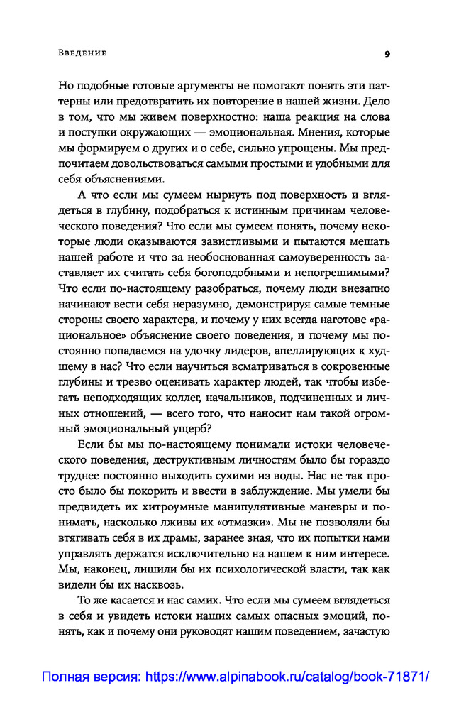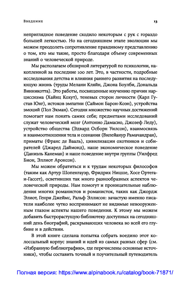 💳 Оплатить за товар можно при получении 🇰🇿 Есть бесплатная доставка по Казахстану от 1 дня 🎁 Копите бонусы с каждой покупки Природа человеческого поведения куда сложнее и многограннее, чем кажется на первый взгляд. Причины поступков других людей остаются для нас загадкой, и даже мы сами порой действуем неожиданно для себя. В своей новой книге исследователь психологии социальных взаимодействий Роберт Грин, автор бестселлера «48 законов власти», анализирует механизмы человеческих отношений, оказывающих колоссальное влияние на нашу судьбу. Автор рассказывает о 18 особенностях, в той или иной степени присущих каждому чело-веку; учит, как превращать недостатки в достоинства, противодействовать агрессивности, нарциссизму и заносчивости и не попадаться на уловки манипуляторов, вовремя распознавая токсичные типы личности. Он подкрепляет выводы примерами из жизни знаменитых людей разных эпох — от Перикла до Коко Шанель, от Мэри Шелли до четы Толстых, от Елизаветы I и Дантона до Рокфеллера, Никсона и Мартина Лютера Кинга. Многогранная, оригинальная, остроумная книга эрудита и знатока человеческой природы предназначена для широкого круга читателей. |