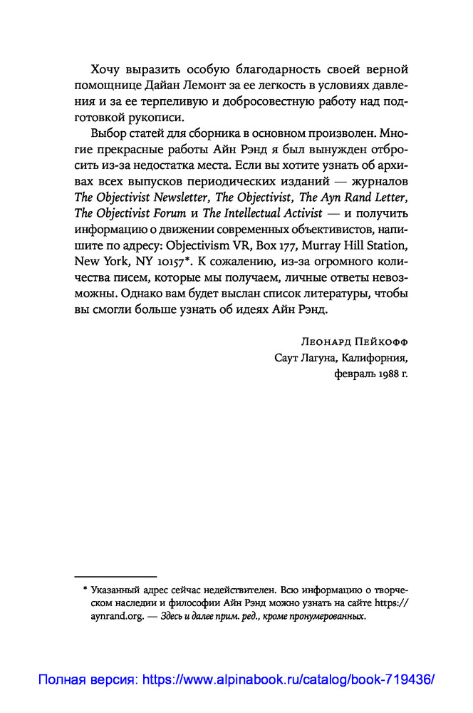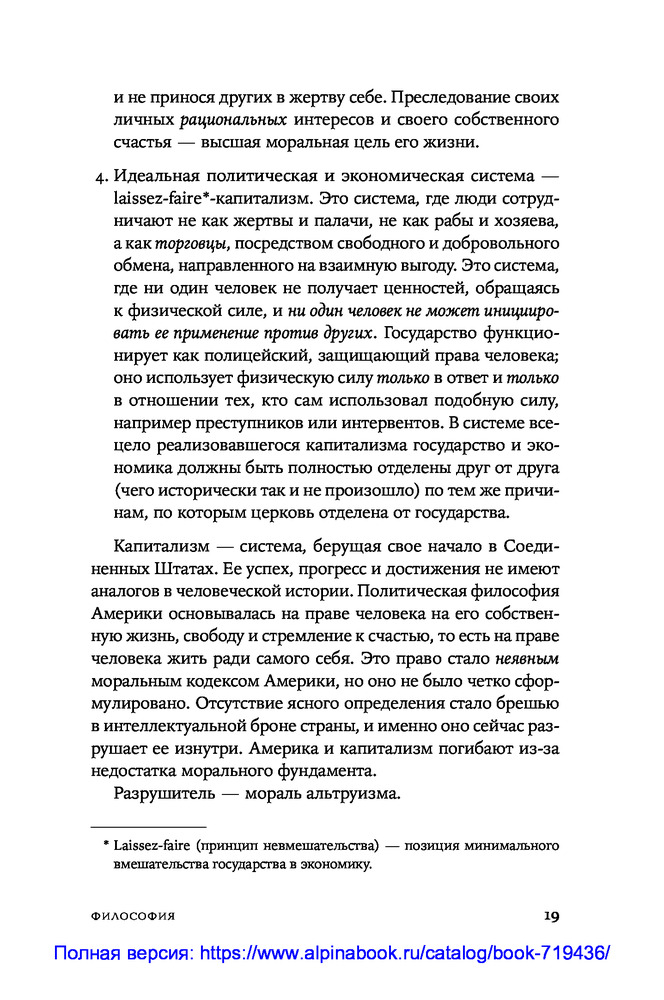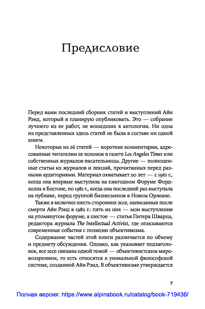 💳 Оплатить за товар можно при получении 🇰🇿 Есть бесплатная доставка по Казахстану от 1 дня 🎁 Копите бонусы с каждой покупки Смерть Мэрилин Монро, освоение космоса, война во Вьетнаме, противостояние США и Советского Союза, позиция женщины в политике, жесткая критика Католической церкви в ее попытках регулировать интимную сторону жизни общества. Эти и другие знаковые события и процессы второй половины XX века Айн Рэнд осмысляет через призму объективистского мировоззрения, оставаясь яростной защитницей индивидуальных свобод и частного капитала. |