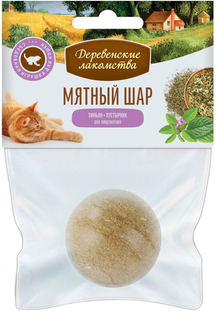 Деревенские лакомства Лакомство-игрушка для кошек «Мятный шар»-20% +19 играется быстро ломается неинтересен