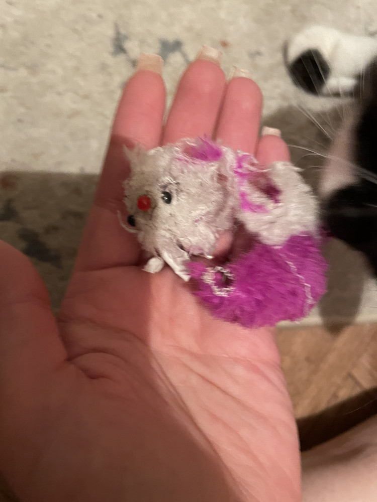 игрушка красивая, гремит... но нашему котику хватило на 20 мин.. от хвоста не осталось и следа))) саму мышку прокусил)))