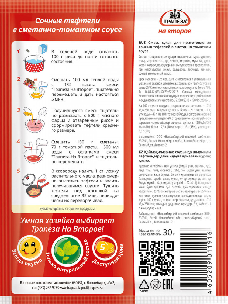 Трапеза Смесь «Сочные тефтели в сметанно-томатном соусе»+10 рекомендовано супер качество вкус удобство