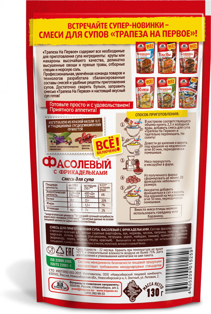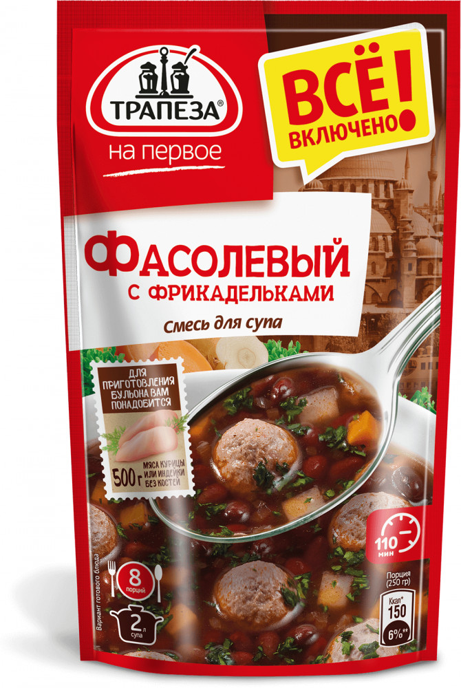 Трапеза Смесь для супа «Фасолевый с фрикадельками»+23 вкусный хорошая смесь простое приготовление красивый цвет